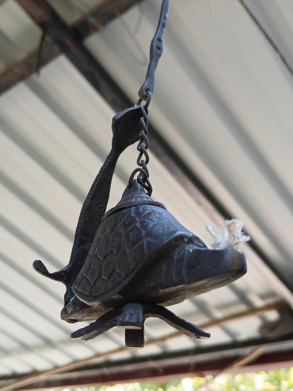Antika görünümlü kaplumbağa formunda bronz Yağ Kandili ölçüleri:(genişliği:9cm) (yükseklik:6cm)