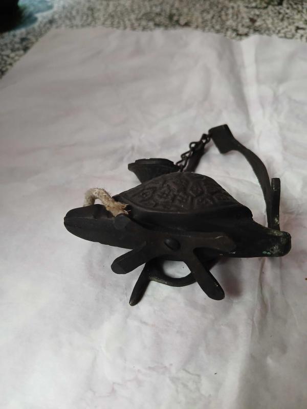 Antika görünümlü kaplumbağa yağ kandili başlıklı antika/koleksiyon objesinin menşei belirtilmemiştir. 2000 ve sonrası dönemine aittir.