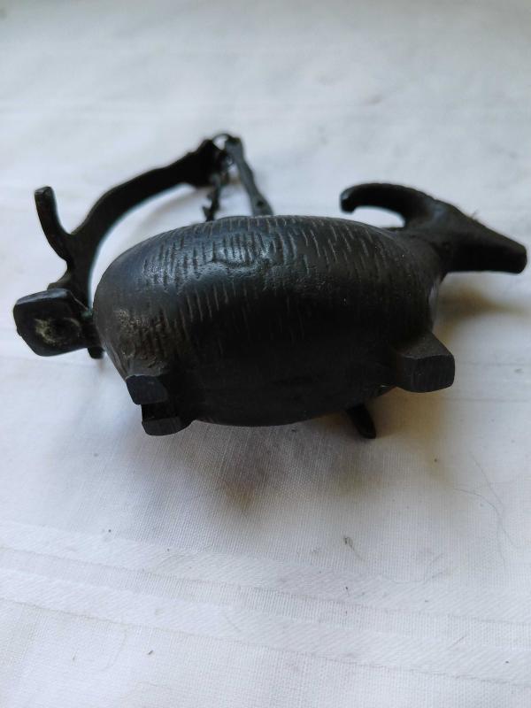 Antika görünümlü koç formunda bronz Yağ Kandili ölçüleri:(genişliği:10cm) (yükseklik:5cm)