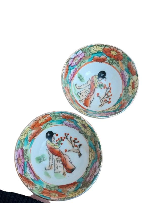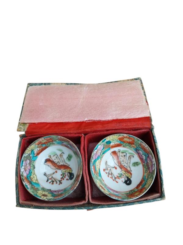 Antika Art Deco Japon tarzı, iki adet küçük boy sake bardağı. Orijinal kutusuyla birlikte.1930lardan kalma seramik japon desenleriyle süslenmiş el işçiliğidir temiz görsellerdeki gibi orjinal resimleri kendi çekimimdir sorarak ve inceleyerek alım yapınız iade kabul etmiyorum!!!