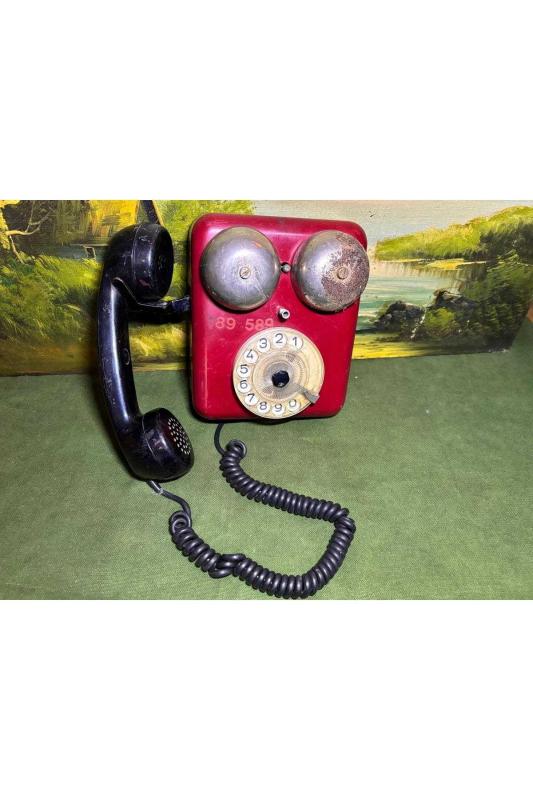 Antika kırmızı renkli çevirmeli avrupa duvar telefonu başlıklı antika/koleksiyon objesinin menşei belirtilmemiştir. Objenin ait olduğu dönem bilinmeketedir.