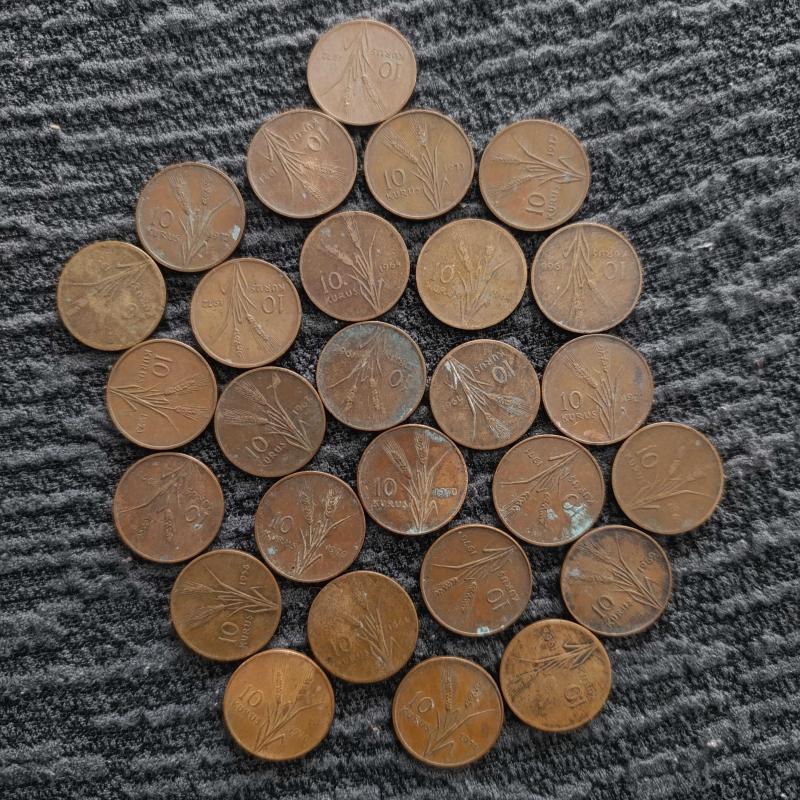 1958 –1973 Seneleri Arası | Toplam 27 Adet | Bakır 10 Kuruş Lotu Farklı yıllar ve değişik kondüsyonlarda koleksiyonluk Yıllara Göre Adet Dağılımı ( Lot 3 ) • 1958 → 1 adet • 1960 → 1 adet • 1961 → 1 adet • 1962 → 1 adet • 1964 → 3 adet • 1966 → 2 adet • 1967 → 2 adet • 1969 → 1 adet • 1970 → 4 adet • 1971 → 5 adet • 1972 → 4 adet • 1973 → 2 adet Toplam: 27 adet