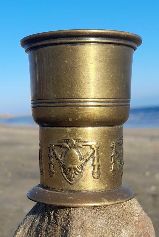 Antika pirinç art nouveau bardak damgalı başlıklı antika/koleksiyon objesi Avrupa menşe’lidir. 1900-1919 arası dönemine aittir.