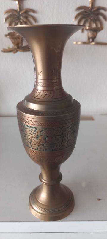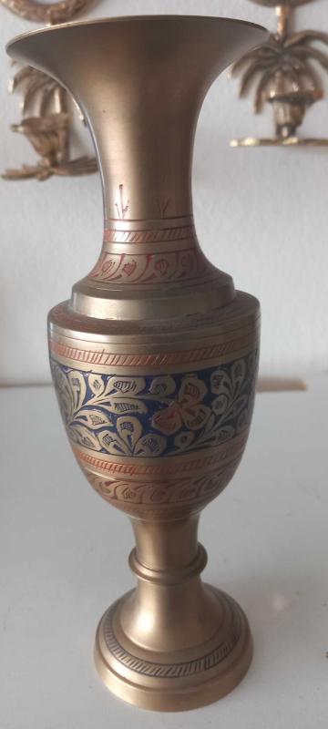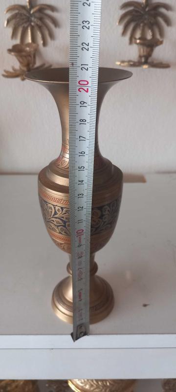 Antika soğuk mine işlemeli prinç vazo ölçü resimde mevcut ağır ve etli ürün