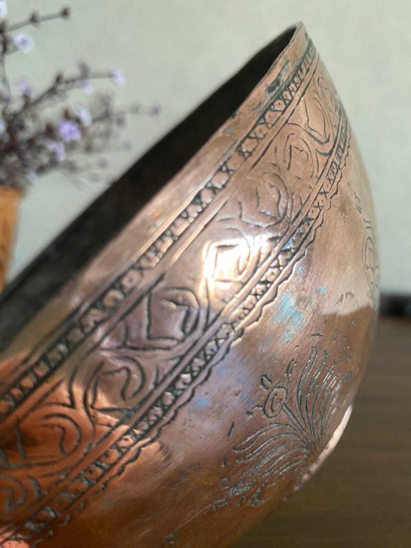 Bu bakır kase 1930'larda aile koleksiyonuna eklendi ve el yapımıdır. Kase büyük olduğundan dekorasyon dışında mistik sesler elde etmeye uygundur. Kase genişliği 25 cm, yüksekliği 10 cm, ağırlığı 750 gramdır.