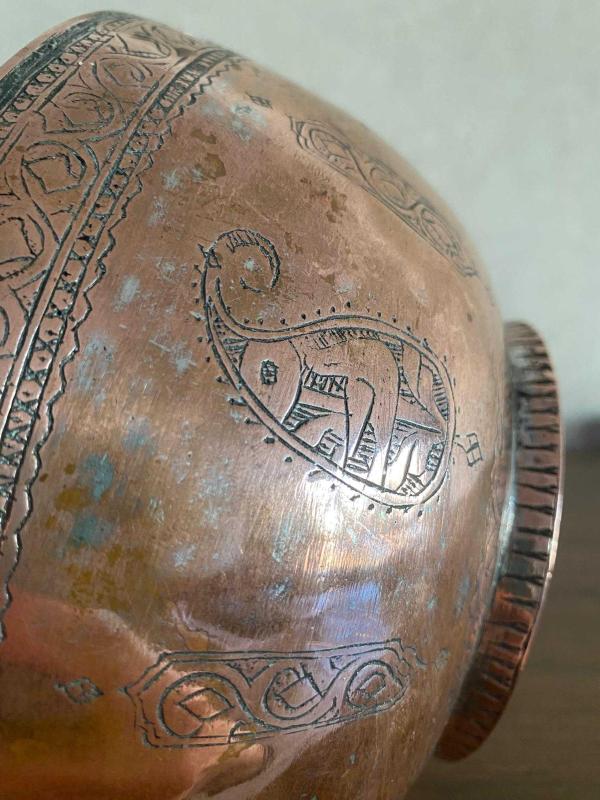 AntikaBakır El Dövme Kase başlıklı antika/koleksiyon objesi Türkiye menşe’lidir. 1920-1940 arası dönemine aittir.