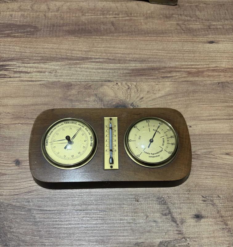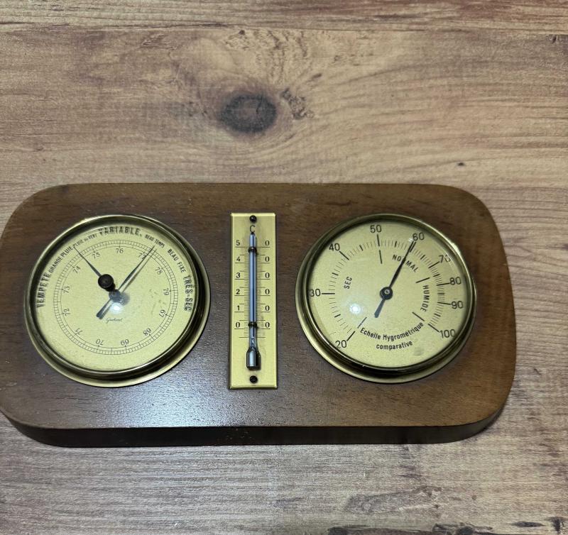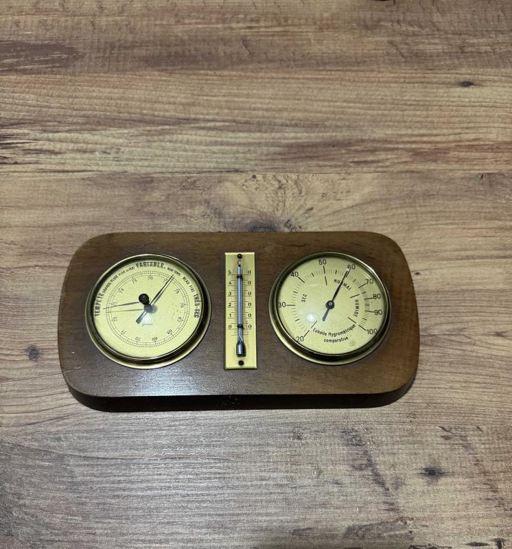 Antika/Retro Ahşap Meteoroloji İstasyonu (Barometre & Higrometre) Evinize veya ofisinize nostaljik bir hava katacak, Fransızca terimlerle süslü çok şık bir duvar aksesuarı. Ahşap kaide üzerine pirinç detaylı üç farklı ölçüm cihazını bir araya getiren bu set hem dekoratif hem de fonksi, 14 gün önce kitantik’te satışa sunulmuştur.