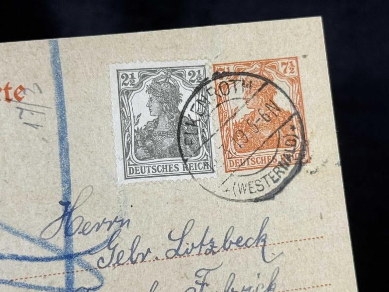 Antiye 1919 yılından Almanya Germania Pullu 2 1/2 Pfennig ve Germania 7 1/2 Pfennig kendinden Pullu Postakartı fotoğraftaki ürün gönderilecektir