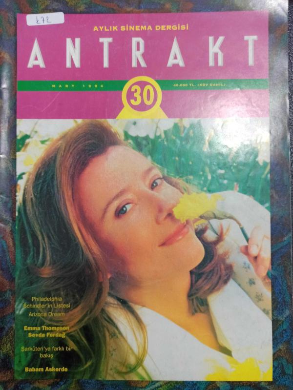 Antrakt Aylık Sinema Dergisi- Mart 1994- Emma Thompson- Sevda Ferdağ- Rosie Perez- Robert Altman- Sam Neill- Ben Kingsley- Libera Me- Alain Cavalier- Handan İpekçi- Tom Hanks- Yıpranma, sararmalar ve yırtılmalar zamana bağlı olarak görülebilir.