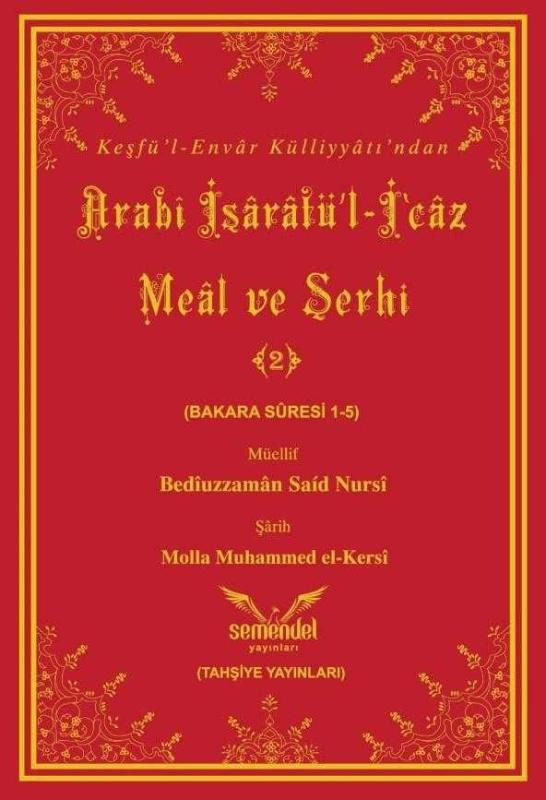 395 sayfa, şamua kâğıt, 17 x 24 cm ebadında, lüks bez cilt. ISBN: 978-605-8232-22-8 (Semendel Yayınları) Bediüzzaman Said Nursî / Molla Muhammed el-Kersî Bediüzzaman Said Nursî Hazretlerinin, Birinci Dünya Harbi'nin ilk yıllarında, Doğu Anadolu'daki cephe hattında muharebeye bizzat iştirak ederken Arapça olarak telif ettiği “İşârâtü’l-İ’câz” adlı eseri, Molla Muhammed el-Kersî tarafından orijinal nüshası esas alınarak tercüme ve şerh edildi. Eserin Takdim yazısında, Bediüzzaman Hazretlerinin beyanlarına dayanılarak neden yeni bir tercüme ve şerh yapıldığı anlatılıyor. “Eserimi, hakíkí bir tefsîr niyyetiyle yapmadım; ancak ulemâ-i İslâm’dan ehl-i tahkíkın takdîrlerine mazhar olduğu takdîrde, uzak bir istikbâlde yapılacak yüksek bir tefsîre bir örnek ve bir me'haz olmak üzere o zamânların insânlarına bir yâdigâr maksadıyla yaptım.” diyen Bediüzzaman, eserin "umûm Risâle-i Nûr’un bir fihristesi, bir listesi ve o Nûr bahçesinin bir fidanlığı ve sırr-ı i’câzi’l-Kur’ân’ın bir menbaı olduğu"nu da belirtiyor. Dakík nükteleri ve ince ma’nâları ihtivâ eden bu mübârek tefsîr, müellifinin her ân şehîd olmayı beklemesi gibi bir hâlet-i rûhiyye içinde kaleme alındığı için, İslâm tarihinde bu ma’nâda böyle bir tefsîrin eşi ve benzerine rastlanmıyor. Kitabın ikinci cildinde Bakara Sûresi’nin 1-5. âyetleri tefsir ve şerh ediliyor. “Hurûf-i mukattaa” denilen “Elif, Lâm, Mîm” harfleri ile başlayan sûrede bu harflerin ne mânâya geldiği anlatılıyor. İslâm tarihi boyunca herkesin merakını çeken hurûf-i mukattaa konusunda tafsîlâtlı bilgiler verilen eserde, kullanılan harfler incelendiğinde 504 ihtimalden 1 ihtimalin tercih edildiği, dolayısıyla Kur’ân’ın beşer kelâmı olmadığı isbât ediliyor. Ebced, cifir gibi hesaplamaların İslâmî ilimlerdeki yeri konusuna açıklık getirilen İşârâtü’l-İ’câz şerhinin ikinci cildinde, Medine’de bir Yahudi hahamın Bakara Suresindeki ilk âyetleri Hz. Resûlullah (asm) Efendimizden dinledikten sonra; baştaki hurûf-i mukattaaya yüklediği mânâlar ve ona karşı Hz. Peygamber (asm) Efendimizin verdiği cevaplar da naklediliyor.