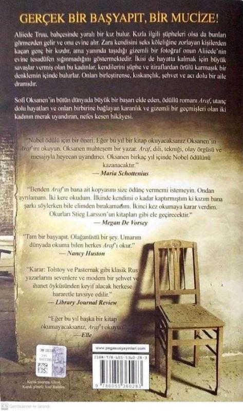 Araf, Sofi Oksanen tarafından kaleme alınmıştır. Kitap Pegasus Yayıncılık tarafından yayınlanmıştır. 384 sayfadır. Araf adlı eser Türkçe dilindedir.