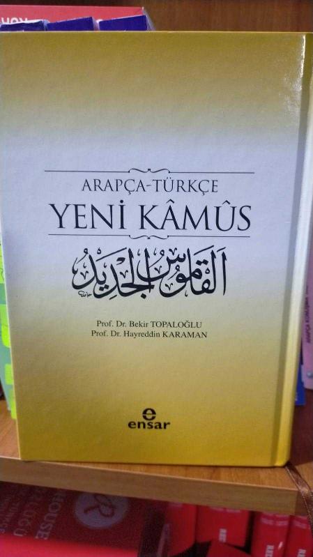 Arapça-Türkçe Yeni Kamus, Hayreddin Karaman; Bekir Topaloğlu tarafından kaleme alınmıştır. Kitap 2015 yılında Ensar Neşriyat tarafından Arapça Dil Serisi dizi/serisi kapsamında 9789756794210 ISBN kodu ile yayınlanmıştır. Satışta olan kitap, yayınevinin 24. baskısıdır. 536 sayfadır.