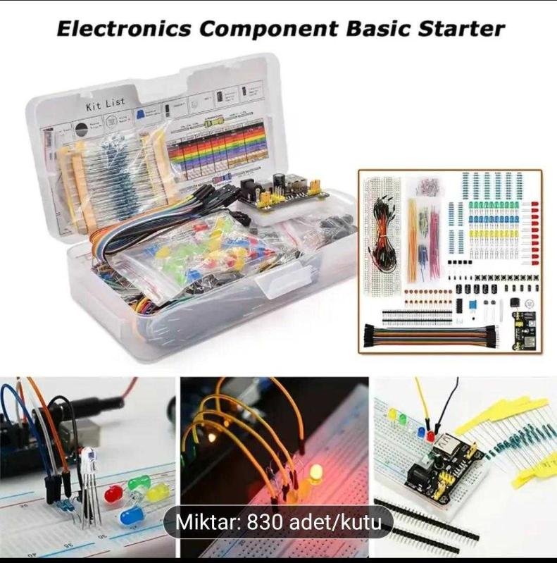 Arduino uyumlu Elektronik Başlangıç Kiti (830 bileşenli Tam Set)(İçeriğinde: Ekmek tahtası, bağlantı Telleri, Dirençler, Sensörler bulunmaktadır. İçerik ile ilgili detaylara görsellerden ulaşabilir siniz. )Elektronik DIY İhtiyaç kutusu olarak ta adlandırılan bu elektronik set aynı zamanda Uno R3 Program öğretimi ile uyumludur. Herhangi bir sorun olması durumunda, uygulamanın izin verdiği süre içerisinde, eksiksiz olarak, koşulsuz iade edebilirsiniz. Ürün kodu:(TMF 25/0420)