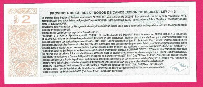 Argentina 2 Pesos 2001 Emergency La Rioja UNC (TK 18 587) ÇİL, bir ay önce satışa sunulmuştur.