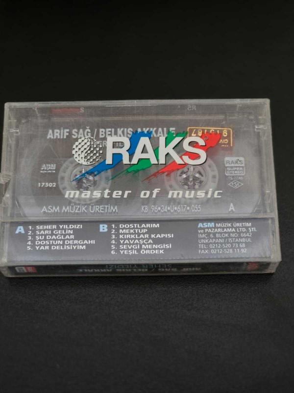 Arif Sağ&Belkıs Akkale düetinin 1996 yılında piyasaya çıkan Seher Yıldızı adlı mükemmel türkülerle dolu albümünün jelatini açılmamış orijinal ambalajlı kaseti.