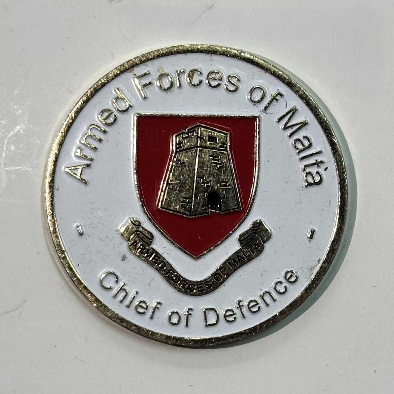 Armed Forces of Malta (Malta Silahlı Kuvvetleri) adına hazırlanmış, “Chief of Defence” ibaresi taşıyan koleksiyonluk askeri hatıra madalyonudur. Üzerinde Malta Silahlı Kuvvetleri’nin resmi arması ve savunma kuvvetlerini temsil eden kule sembolü yer almaktadır. Askeri koleksiyon objeleri arasında yer alan bu tür madalyonlar, genellikle görev hatırası, kurum içi özel etkinlik veya protokol hediyesi olarak üretilmektedir. Uluslararası askeri koleksiyon, madalya ve challenge coin koleksiyonerleri için dikkat çekici bir parçadır. Ürün yaşına bağlı yüzey izleri ve kullanım patinası taşımakta olup bu durum koleksiyonluk karakterini desteklemektedir. Fotoğraflardaki ürün birebir gönderilecektir. Tema: Askeri / Uluslararası Ordu Hatıra Madalyonu