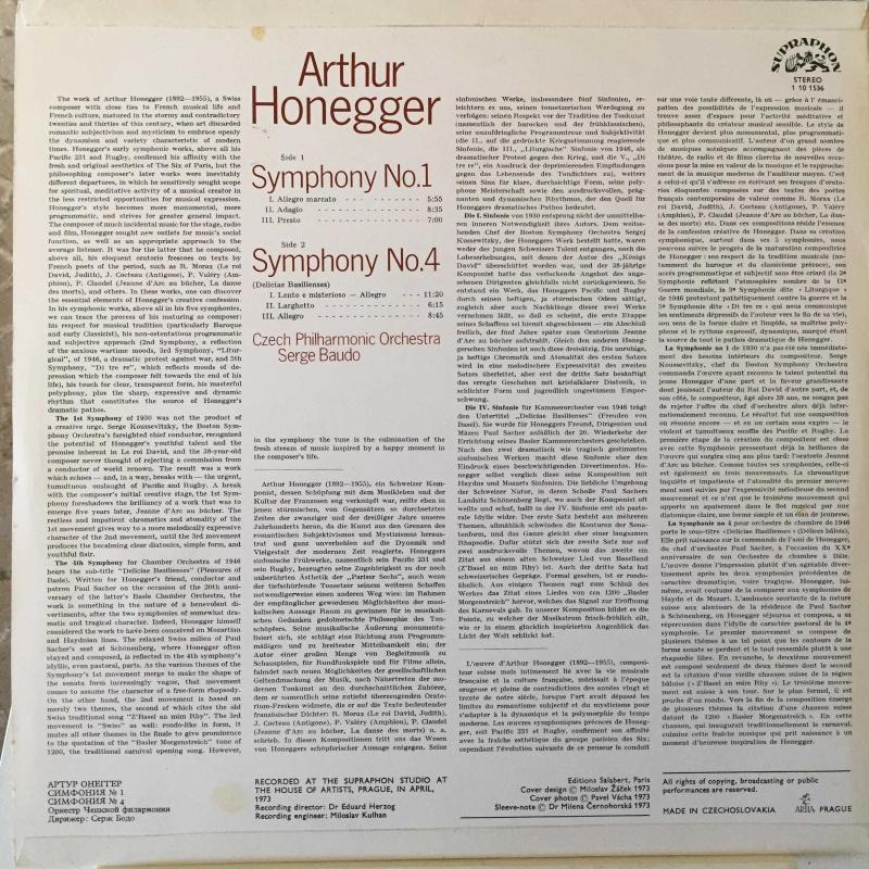 Arthur Honegger - Symphony No. 1 - Symphony No. 4 (Deliciae Basilienses) / Czech Philharmonic Orchestra, Serge Baudo / Czech. 1974 / LP / *classical*, en son 6 ay önce güncellenmiştir.