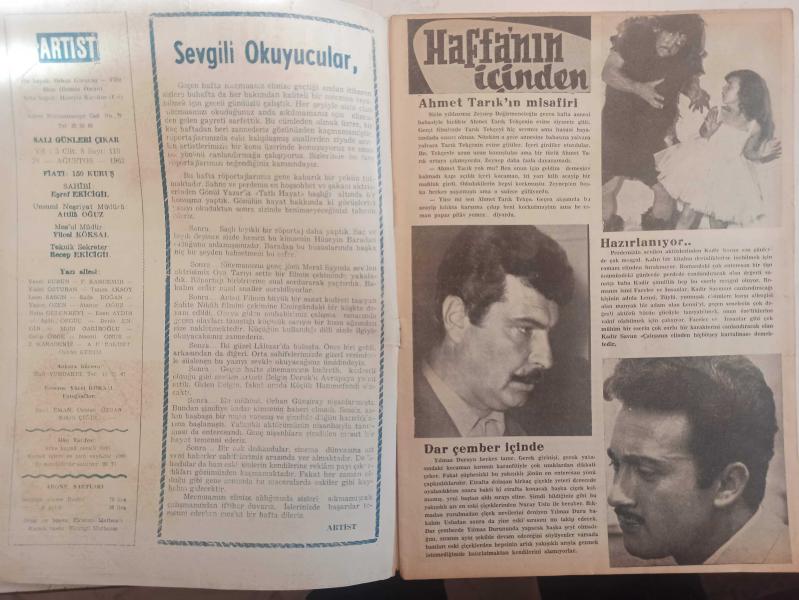 Artist Haftalık Ses Tiyatro ve Sinema Mecmuası Dergisi - 28 Ağustos 1962 - Sayı:110 - Orhan Günşiray - Filiz Akın - Hüseyin Baradan - Ahmet Tarık Tekçe - Zeynep Değirmencioğlu - Kadir Savun - Nuray Uslu - Yılmaz Duru - Sadri Alışık - Özdemir Birsel - Belgin Doruk - İsmail Hakkı - Meral Sayın - Oya Tarı - Orhan Günşiray - Gönül Bayhan - Muzaffer Tema - Nebahat Çehre - Öztürk Serengil - Gönül Yazar - Ulvi Uraz - Agah Özgüç - Muhterem Nur - Neşe Yulaç - Birsen Menekşeli - Aysel Tanju - Suna Selen - Handan Adalı - Çolpan İlhan - Rüçhan Çamay - Orhan Elmas - Özcan Tekgül - Süreyya Gürol - Göksel Arsoy - Ceylan Ece - Orhan Elmas - Lale Oraloğlu - Ali Oraloğlu - Cilalı İbo - Serpil Gül - Turgut Özatay - Senih Orkan - Kenan Pars - Ulvi Uraz - Filiz Akın - Metin Erksan - Celal Ersöz - Belgin Doruk - Mualla Kavur - Muhterem Nur - Neşe Yulaç fotoğraf ve haberi - Tam Takım Dergi Yıpranma, sararmalar, kupon kesiği ve yırtılmalar zamana bağlı olarak görülebilir