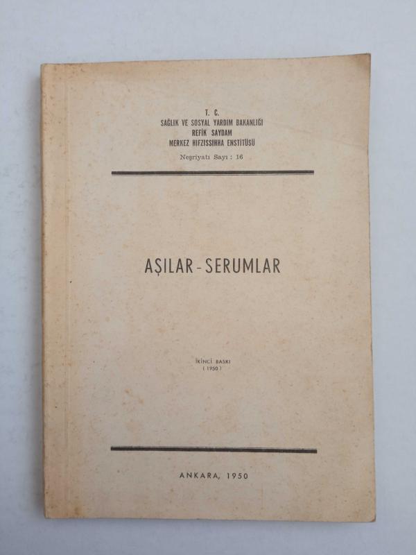 Kitap 1950 yılında T. C. Sağlık Bakanlığı Yayını tarafından [Ankara] yayınlanmıştır. 130 sayfadır. Aşılar - Serumlar adlı eser Türkçe dilindedir.