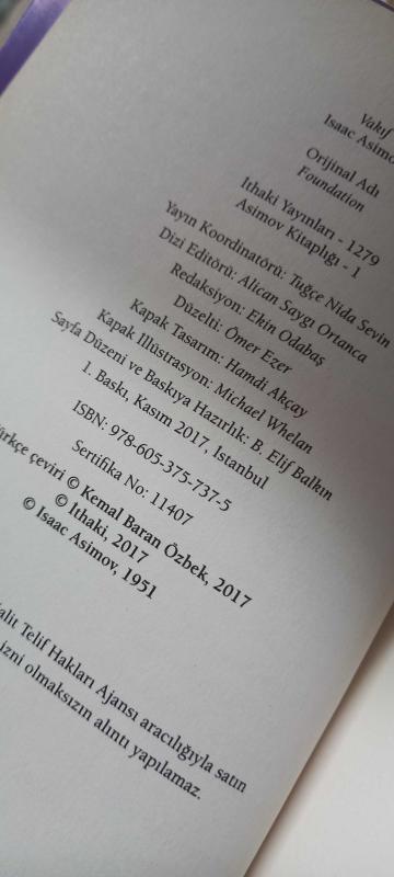Asimov * Vakıf / Vakıf Serisi, Isaac Asimov tarafından kaleme alınmıştır. Kitap 2017 yılında İthaki Yayınları tarafından [İstanbul] yayınlanmıştır. Bu baskının çevirisi Kemal Baran Özbek tarafından yapılmıştır. 300 sayfadır. Asimov * Vakıf / Vakıf Serisi adlı eser Türkçe dilindedir.