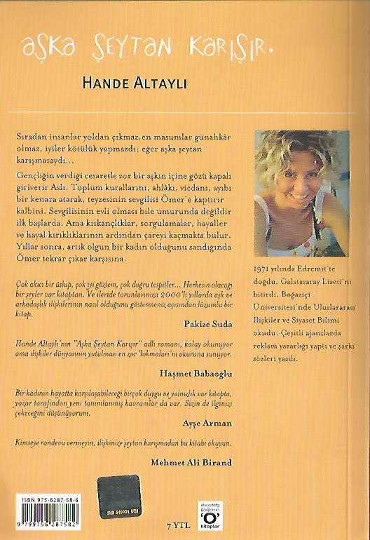 Aşka Şeytan Karışır, Hande Altaylı tarafından kaleme alınmıştır. Kitap 2006 yılında O Kitaplar tarafından yayınlanmıştır. 188 sayfadır. Aşka Şeytan Karışır adlı eser Türkçe dilindedir.