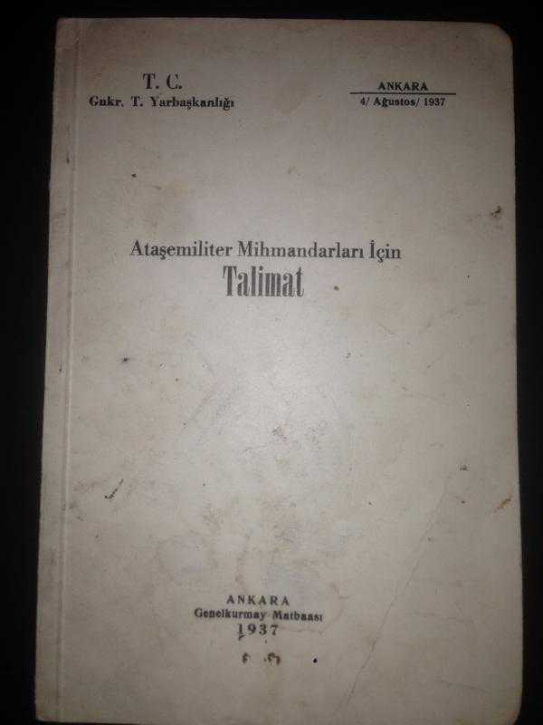 Ateşemiliter Mihmandarları İçin Talimat . Gnkr. T. Yarbaşkanlığı, Ankara, Genelkurmay Matbaası, 1937. 2 s.