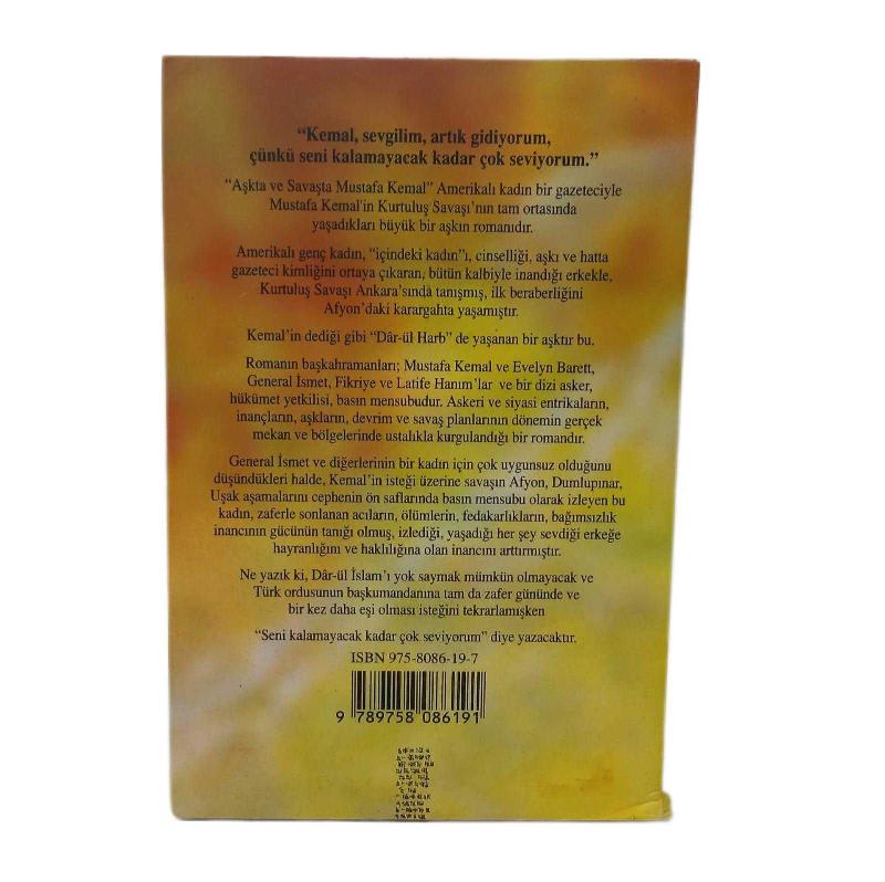 "Aşkta ve Savaşta Mustafa Kemal" Amerikalı kadın bir gazeteciyle Mustafa Kemal´in Kurtuluş Savaşı´nın tam ortasında yaşadıkları büyük bir aşkın romanıdır. Amerikalı genç kadın, "içindeki kadın"ı, cinselliği, aşkı ve hatta gazeteci kimliğini ortaya çıkaran, bütün kalbiyle inandığı erkekle, Kurtuluş Savaşı Ankara´sında tanışmış, ilk beraberliğini Afyon´daki karargahta yaşamıştır. Kemal´in dediği gibi "Dar-ül Harb" de yaşanan bir aşktır bu... (Arka Kapak)