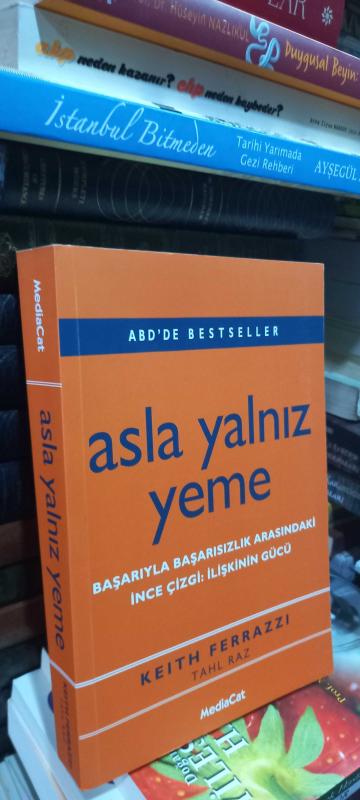Asla Yalnız Yeme - Başarıyla Başarısızlık Arasındaki İnce Çizgi: İlişkinin Gücü, Keith Ferrazzi, Tahl Raz tarafından kaleme alınmıştır. Kitap 2017 yılında Mediacat Kitapları tarafından [İstanbul] yayınlanmıştır. Bu baskının çevirisi Levent Göktem tarafından yapılmıştır. 336 sayfadır. Asla Yalnız Yeme - Başarıyla Başarısızlık Arasındaki İnce Çizgi: İlişkinin Gücü adlı eser Türkçe dilindedir.