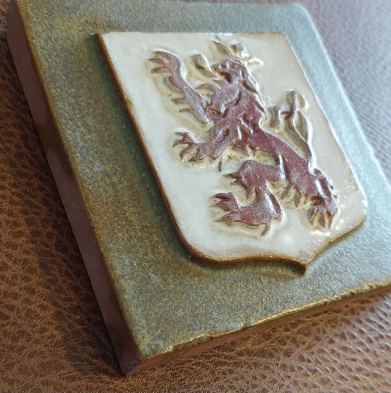 Aslan Armalı, Taç Giyme Töreni İçinn Üretilmiş Nadir Orjinal Seramik (Fayans) Karo. El Yapımı Mükemmel Detaylı Bir İşçilikte İşlemiş Renkli Geleneksel Rölyef Kabartma. 1930-1950'ler. başlıklı antika/koleksiyon objesi Avrupa menşe’lidir. 1920-1940 arası dönemine aittir.