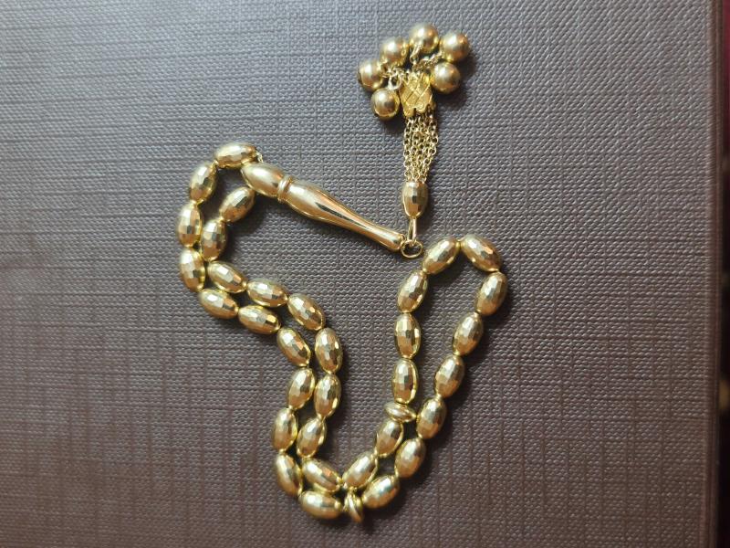 komple altın 525 damgalı. 11 gram. İmame ucunda ki tutamaç 24 ayardır 1 gramdan fazladır. Sıfır gibidir. Özel kesim. Mağaza fiyatı altında.. 2 yıl önce alındı.