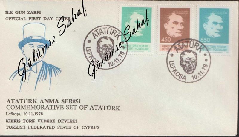 Atatürk Anma Serisi İlk Gün Zarfı / FDC, 1978, Kıbrıs Türk Federe Devleti, bir ay önce satışa sunulmuştur.