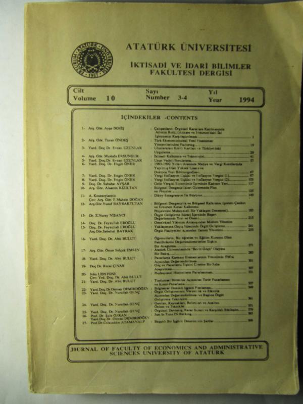 Kitap 1994 yılında Atatürk Ü. İktisadi ve İdari Bilimler Fakültesi tarafından [Erzurum] yayınlanmıştır. 401 sayfadır. Atatürk Üniversitesi İİBF Dergisi 1994 Cilt 10 Sayı 3-4 adlı eser Türkçe dilindedir.