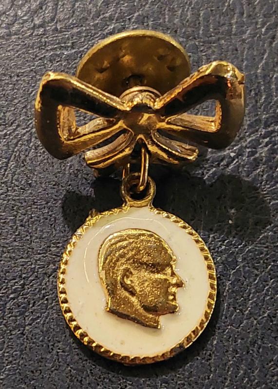 Atatürk Yaka Rozeti - Fiyonklu Broş Rozet, Altın Krom Kaplama/Beyaz Mineli.