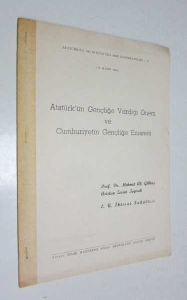 Atatürk'ün Gençliğe Verdiği Önem ve Cumhuriyetin Gençliğe Emaneti, Mehmet Ali Göktaş (Prof. Dr.), Zerrin Toprak tarafından kaleme alınmıştır. Kitap 1981 yılında T.P.A.O. İzmir Rafinerisi tarafından [İzmir] yayınlanmıştır. 8 sayfadır. Sayfa bilgisi 8 s. olarak belirtilmiştir. Atatürk'ün Gençliğe Verdiği Önem ve Cumhuriyetin Gençliğe Emaneti adlı eser Türkçe dilindedir.