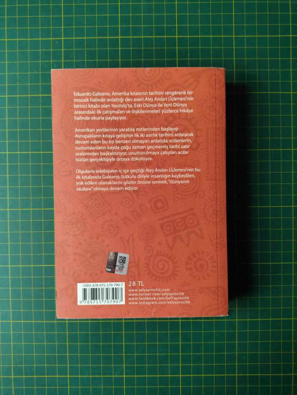 Ateş Anıları 1 - Yaratılış / 1. Baskı, Eduardo Galeano tarafından kaleme alınmıştır. Kitap 2016 yılında Sel Yayıncılık tarafından [İstanbul] yayınlanmıştır. Bu baskının çevirisi Süleyman Doğru tarafından yapılmıştır. 381 sayfadır. Ateş Anıları 1 - Yaratılış / 1. Baskı adlı eser Türkçe dilindedir.