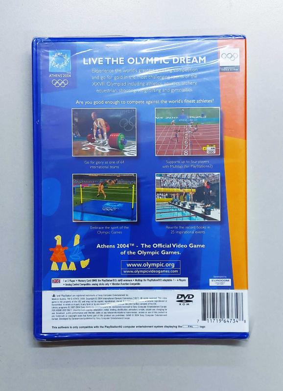 2004 yılında piyasaya sürülen Athens 2004 orijinal PS2 Sony lisans damgalı oyunu. Oyun üretildiği zamandan bu yana ( yaklaşık 21 yıldır ) fabrika ambalajındadır, hiç açılmamıştır. Son derece nadirdir. Kutulu PS2 oyunu biriktirenler için arşivlik bir üründür.