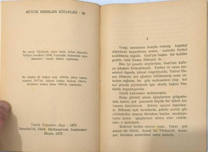 📕 Avare Yıllar – Orhan Kemal | 1972 Varlık Yayınları Baskısı Türk edebiyatının usta kalemi Orhan Kemal’in unutulmaz romanlarından Avare Yıllar, yazarın kendi gençlik döneminden izler taşıyan, yarı otobiyografik nitelikte güçlü bir eserdir. Roman; yoksulluk, hayata tutunma çabası, dostluk ve gençlik hayalleri etrafında şekillenir. Orhan Kemal’in sade, akıcı ve gerçekçi anlatımı; dönemin sosyal atmosferini bütün canlılığıyla yansıtır. Özellikle Adana çevresindeki yaşam, mahalle kültürü ve genç bir insanın hayata karşı arayışı etkileyici bir dille aktarılır. Bu nüsha, Varlık Yayınları Büyük Eserler Kitaplığı (No: 63) serisinden olup Mayıs 1972 baskısıdır. Dönem cep baskısı olması sebebiyle hem okuma hem de koleksiyon değeri taşımaktadır. Orhan Kemal’in toplumcu gerçekçi çizgisini yakından görmek isteyenler için önemli bir eserdir.