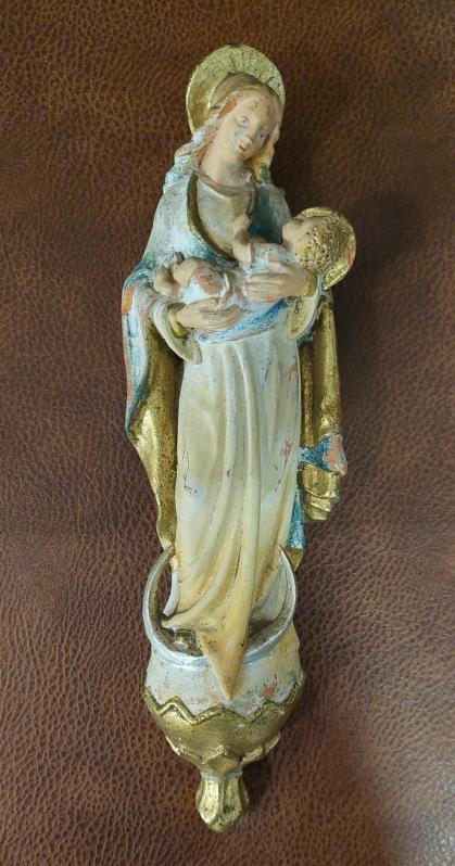 Avrupa, Almanya/Meryem Ana ve Çocuk İsa'yı Tasvir Eden Mükemmel Bir Heykel. Duvara Monteye Uygundur. Orijinal Terracota ve Çok Renkli El Boyamalı (Damgalı.) Restore Edildi. Hafif Patinalı. 1900'ler. (5×8,5×29,5 cm) başlıklı antika/koleksiyon objesi Avrupa menşe’lidir. 1900-1919 arası dönemine aittir.