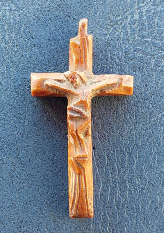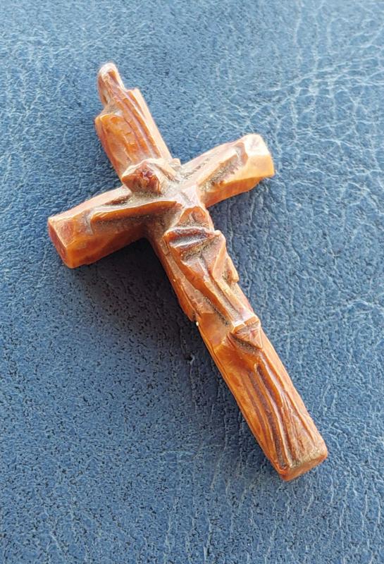 Avrupa, Antik Minyatür Haç/İsa Çarmıh Temalı Kolye Ucu. El Yapımı Oyma Şimşir Ağacı. Mükemmel Detaylı Bir İşçilik. 1920-1940'lar (23x44 mm) Nadir.