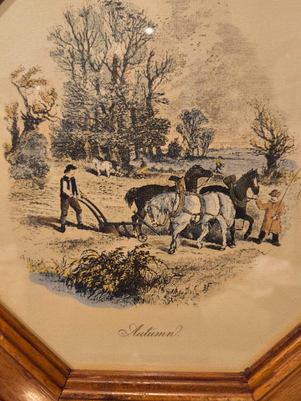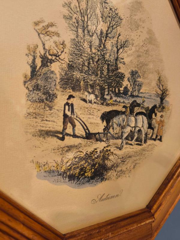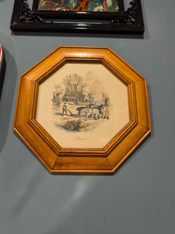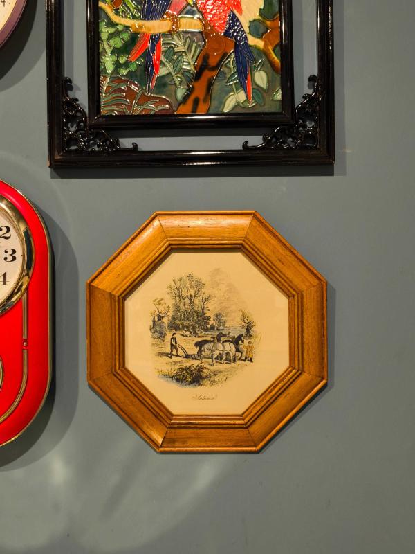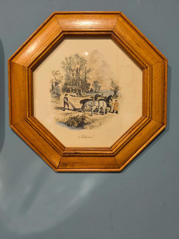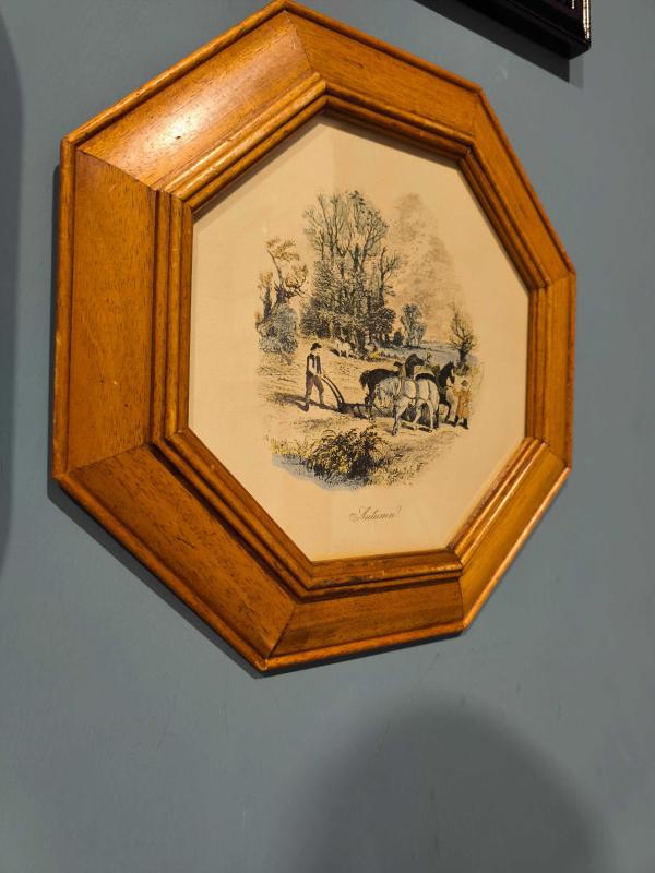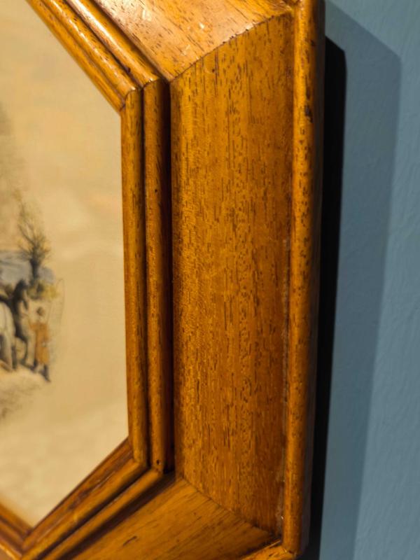 Masif ahşap sekizgen çerçeve içinde cam altı taş baskı tablo. 40 cm. Çok iyi durumda. Yaşlı ve havalı