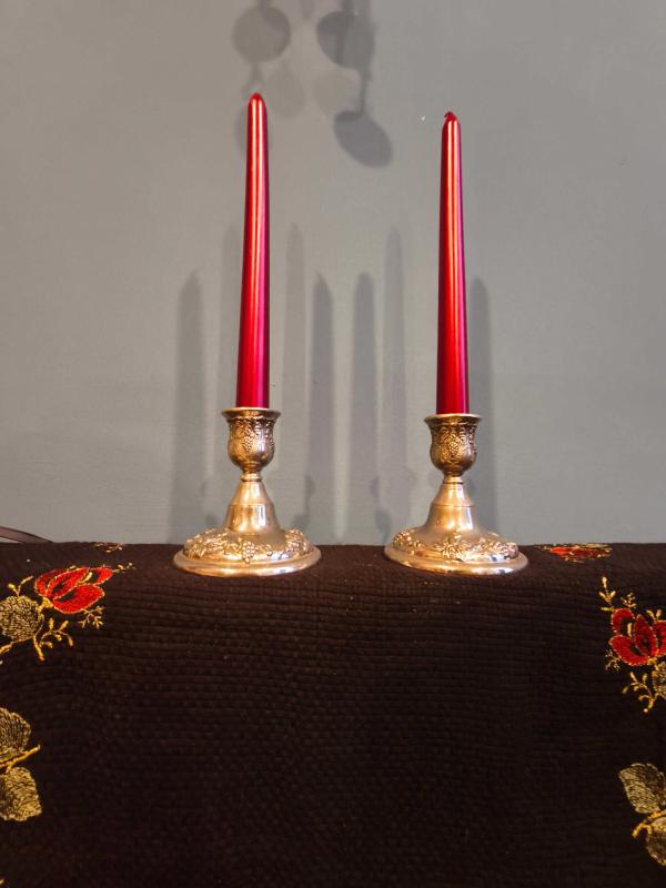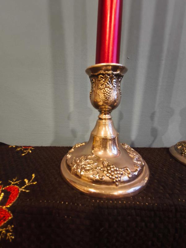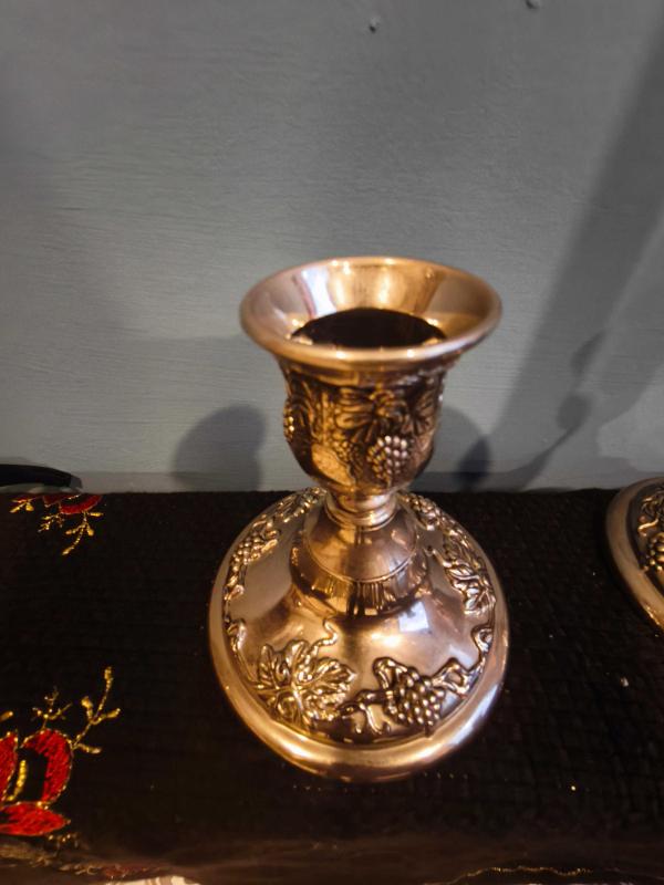 Çizik kırık çatlak yoktur. Eski ama sağlam iki adet antika şamdan. Ölçüler fotoda. Mumlar hariçtir. Mumlar istenirse çifti 170 TL dir. Birden fazla ürün alımında mumları hediye ederim.