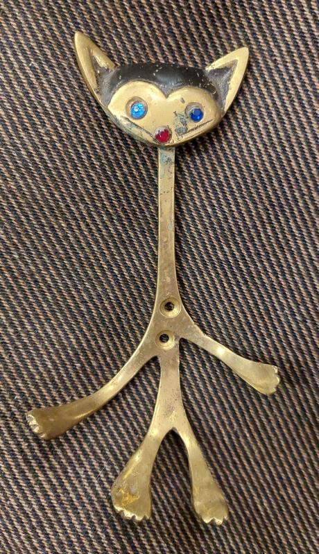 Avrupa, Dekoratif Kedi Temalı Palto Askılığı. Bronz/Prinç Malzeme Üzeri Detaylı İşcilik İle, Renkli Taşlarıyla Ön Plana Çıkan Sevimli Kedi Figür Tasarım. 1960'lar. (14,5×7,5 cm), 2 gün önce kitantik’te satışa sunulmuştur.