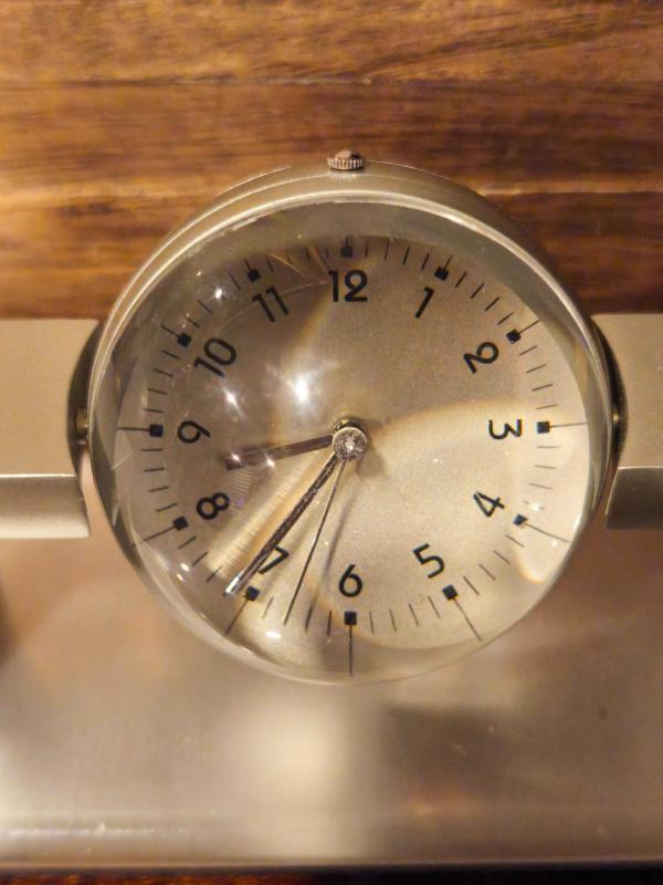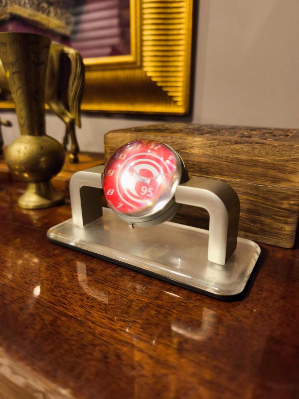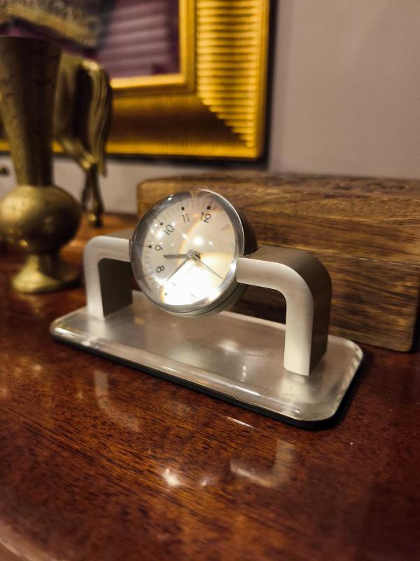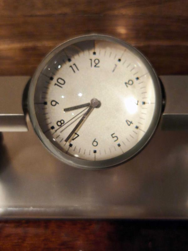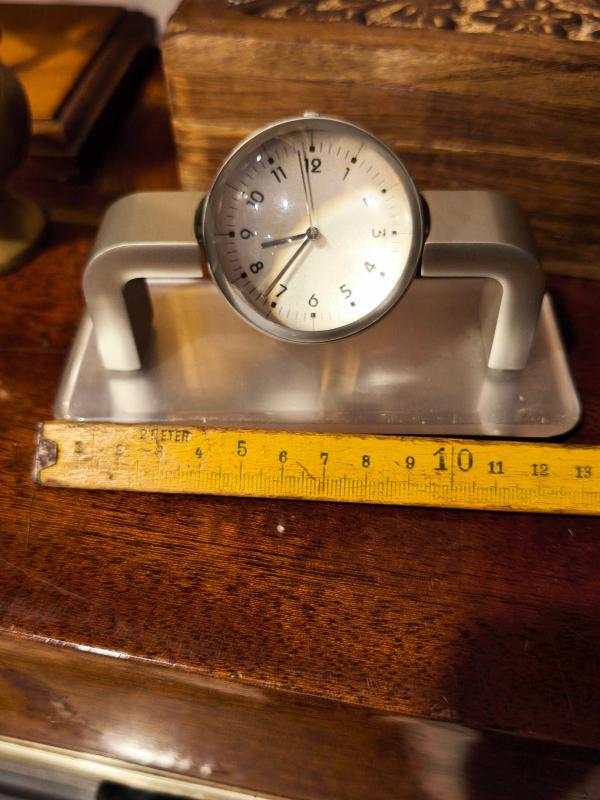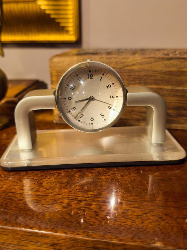 Çok şık ve farklı. Pilli ve çalışır durumda ( pili yeni ) Eksiksiz formda. Ağır kaliteli saat. Orta yuvarlak kısım 360 derece dönüyor.