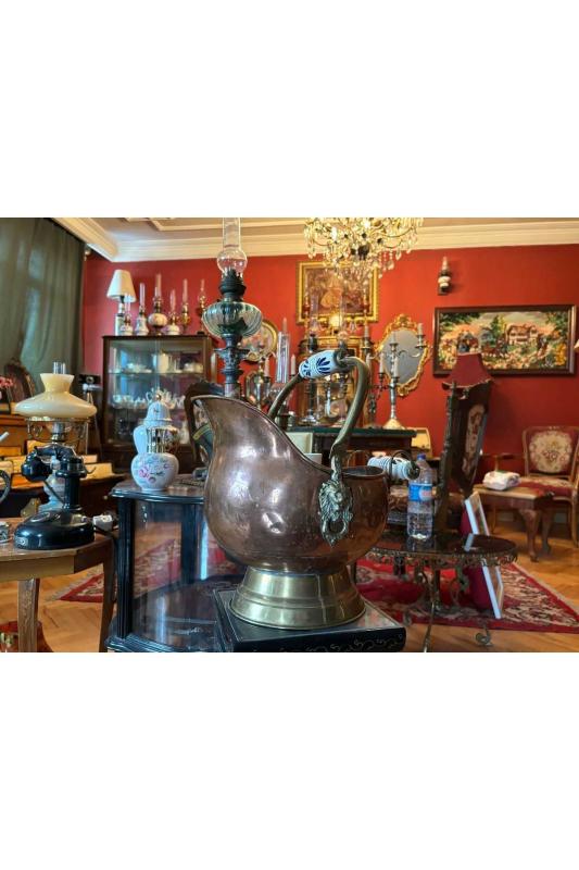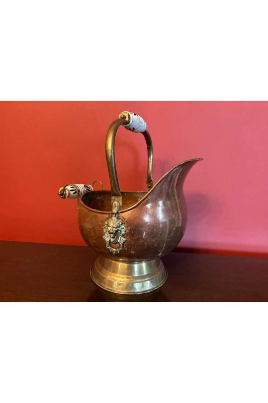 Avrupa bakır kömür kovası porselen kulplu 37 cm boyunda 25 cm çapında, 6 ay önce kitantik’te satışa sunulmuştur.