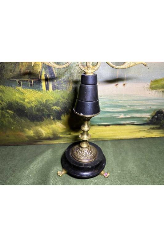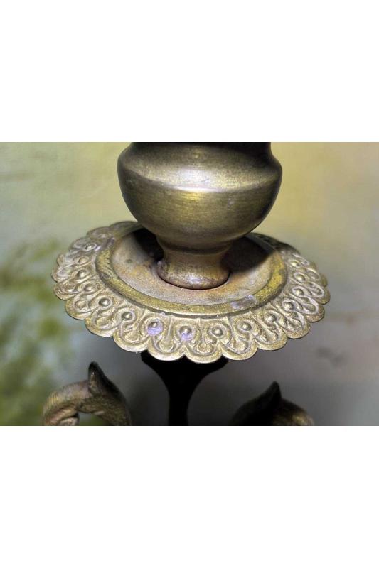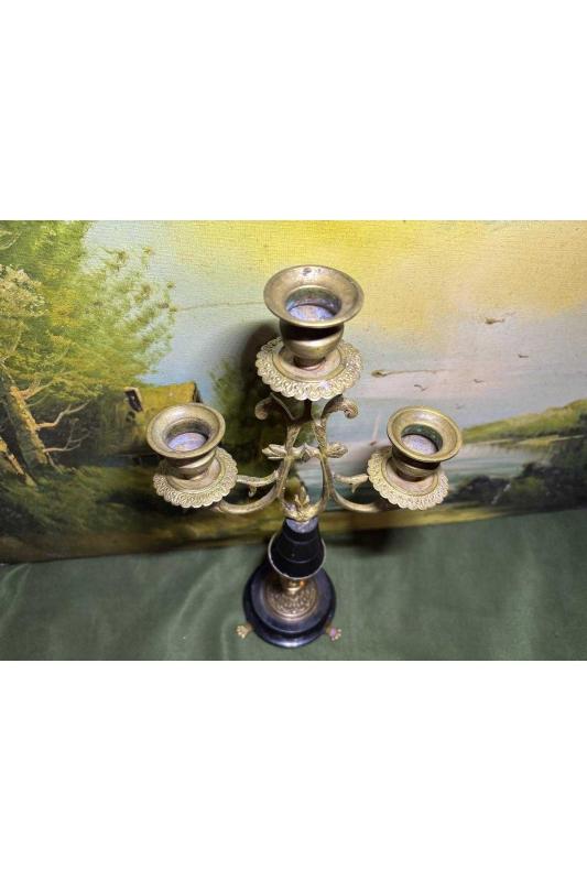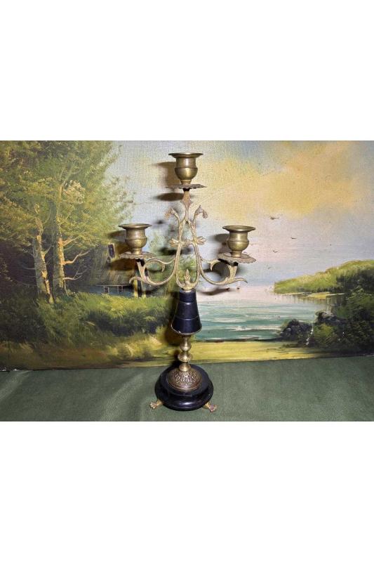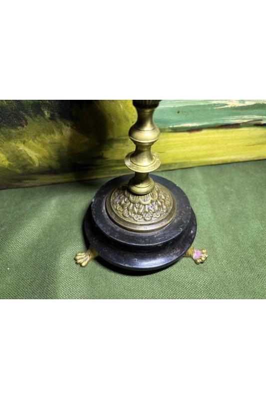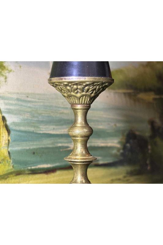 Avrupa pirinç Şamdan 33,5 cm boyunda başlıklı antika/koleksiyon objesinin menşei belirtilmemiştir. Objenin ait olduğu dönem bilinmeketedir.