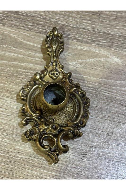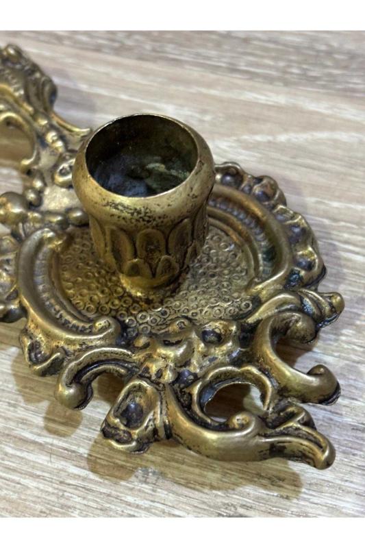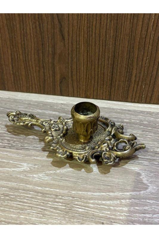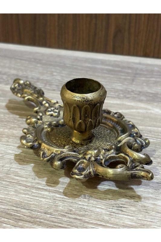 Avrupa pirinç şinanay mumluk şamdan 16 cm x 8 cm x 5 cm ölçülerinde başlıklı antika/koleksiyon objesinin menşei belirtilmemiştir. Objenin ait olduğu dönem bilinmeketedir.