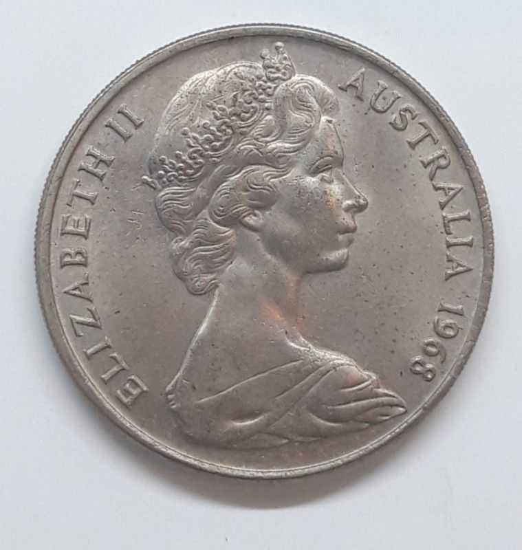 Avustralia 20 Cent 1968 Kraliçe Elizabeth II, 4 yıl önce satışa sunulmuştur.