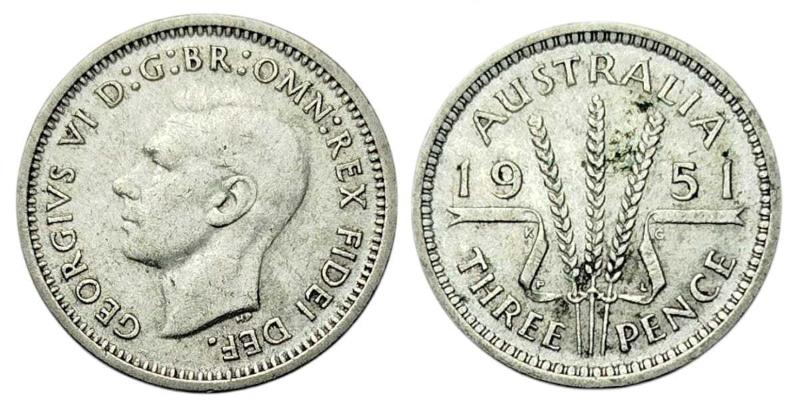 Avustralya 3 Pence, 1951 Gümüş 1.41 gr Kral George VI (1937 - 1952)