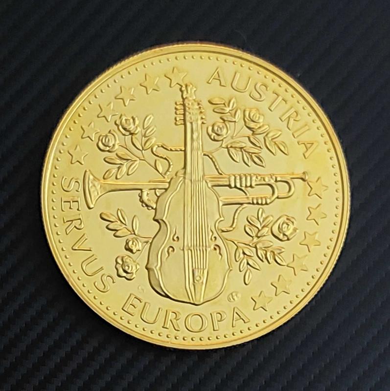 Avusturya, Joseph Haydn Avusturyalı Klasik Müzik Bestecisi Temalı Hatıra Madalyon. Kısaca; "Hem Mozart’ı Hem Beethoven’ı Etkilemiştir. 'Baba Haydn' Olarak Bilinir. En Çok Senfoni Türündeki Eserleriyle Tanınır; Bu türde 104 Eser Vermiştir. Ön Yüz: (1732 Rochrau-1809 Wien) ECU Österreich ECU Arka Yüz: Austria, Servus Europa. Cu-Altın Kaplama. 1995 (28,28 gr/40,1 mm)