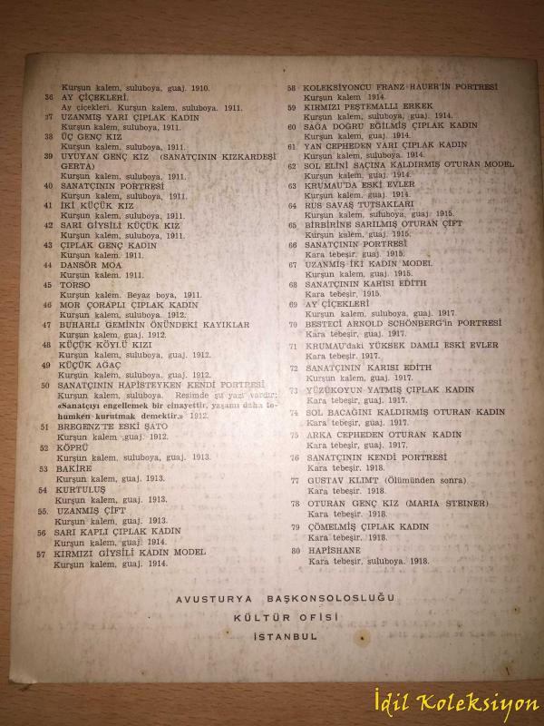 Avusturyalı Gustav Klimt (1862-1918) - Egon Schiele (1890-1918) - Albertina ve Özel Koleksyonlardan Faksimile Baskısı (Suluboya ve Karakalem Sergisi) Walter Koschatzky - Erwin Mitsch - Alice Strobl - Türkçe Katalog Kitap, - tarafından kaleme alınmıştır. Eser - editörlüğünde hazırlanmıştır. Kitap Avusturya Başkonsolosluğu Kültür Ofisi tarafından [İstanbul] - ISBN kodu ile yayınlanmıştır. Bu baskının çevirisi - tarafından yapılmıştır. 6 sayfadır. Sayfa bilgisi - olarak belirtilmiştir. Avusturyalı Gustav Klimt (1862-1918) - Egon Schiele (1890-1918) - Albertina ve Özel Koleksyonlardan Faksimile Baskısı (Suluboya ve Karakalem Sergisi) Walter Koschatzky - Erwin Mitsch - Alice Strobl - Türkçe Katalog Kitap adlı eser Türkçe dilindedir.